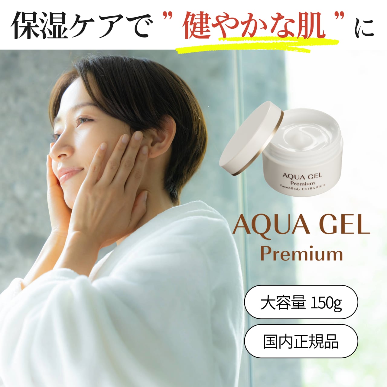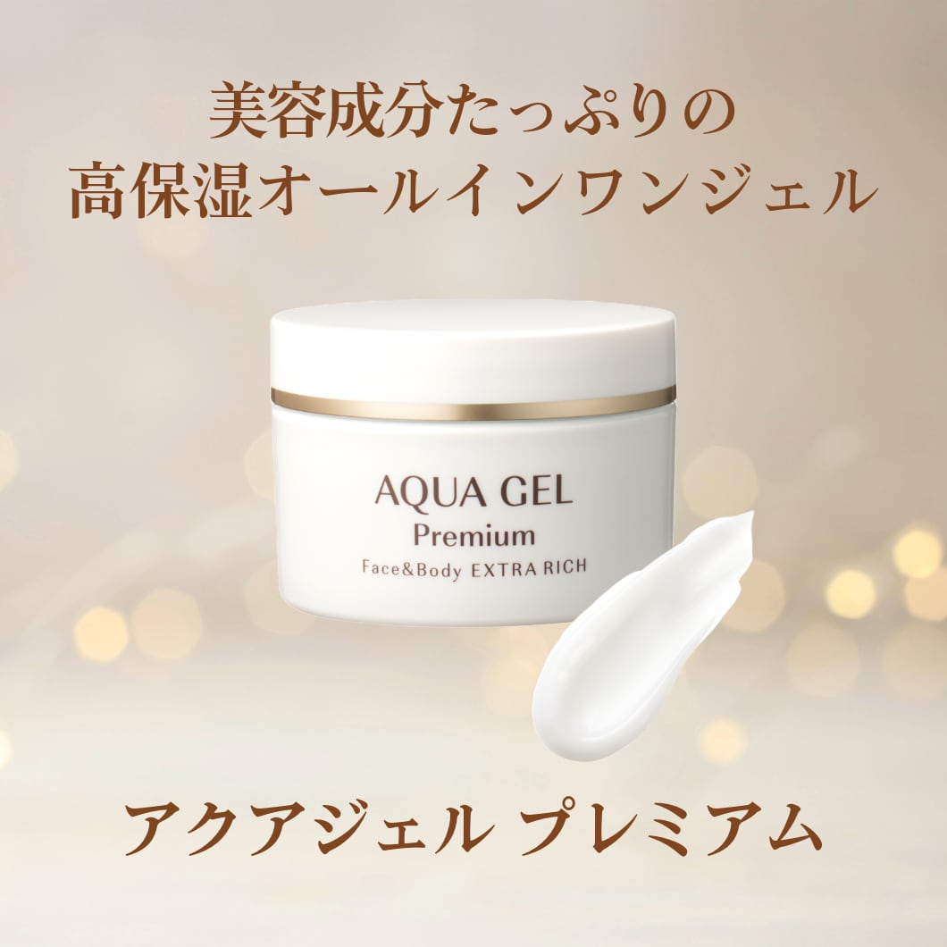アクアジェル プレミアムは、たっぷりと潤い成分を閉じ込めた保湿ジェルです。塗った瞬間に溢れ出る水分(美容成分)が角質層まで浸透し、肌表面を滑るように広がります。そして、保湿性をしっかり保ちつつ、肌はサラサラとした質感に仕上がります。肌にハリ・ツヤ・キメなどを与える成分や肌荒れ・乾燥を防ぐ成分を配合しました。アクアジェルプレミアムは肌を整える美容成分(保湿・整肌)を21種類配合しています。全身の肌を潤す高い保湿力が特徴で、毎日のスキンケアに取り入れることで、しっとりとした健康的な肌を保ちます。